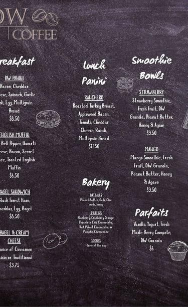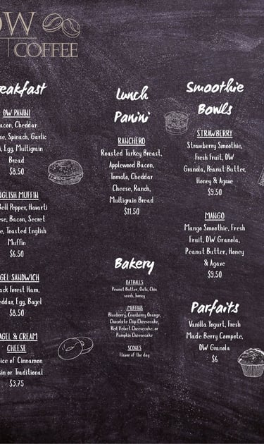 DW Coffee is an authentic café proudly serving Rochester, Wind Lake, and the surrounding Burlington area. When we first opened at the corner of County D and W, our goal was to bring the community together one sip at a time, and we continue to follow that passion. Stop on by and enjoy conversation, food, and a drink with friends and strangers alike.
